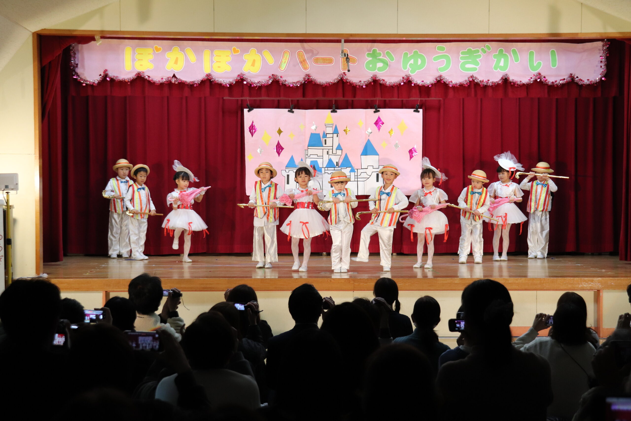 うめ組男女がメリーポピンズの衣装そのままに踊りました。